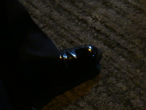 Nicht nur dieser Polizist hat blankgewienerte Schuhe, die auch in der Dunkelheit glänzen!