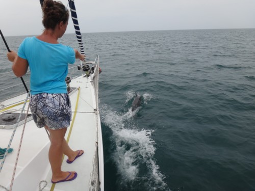 Delphine am Bug sind eine Augenweide, wir könnten ihnen stundenlang zusehen, wie sie die Wellen am Bug umspielen
