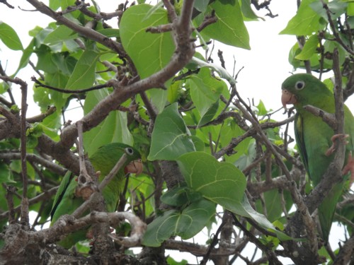 Die Papageien sitzen hier einfach in den Bäumen (von denen es allerdings wegen Platzmangel nicht viele gibt)