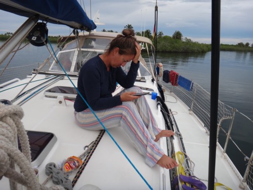 Dagmar bei Ihrer Lieblingsbeschäftigung (ein Moskitonetz wäre dazu sinnvoll...)