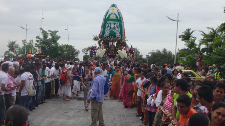 Electric elevator for the statue but the carriot is pulled by the whole crowd