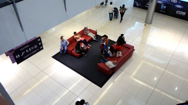 In a shoppling-mall I found this seating which is nice for husbands (and "overloaded" wifes)
