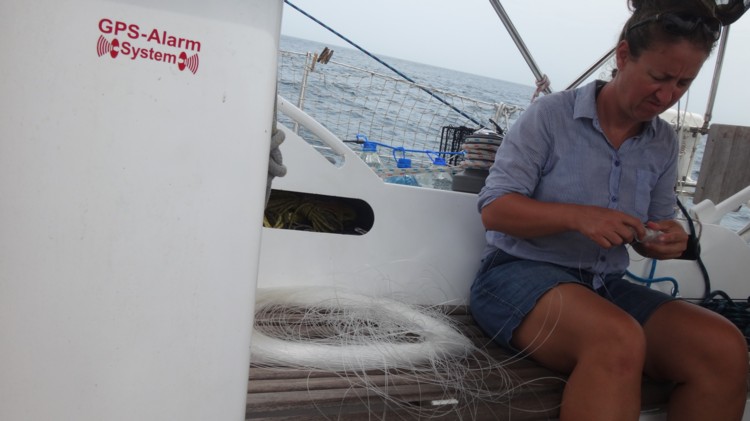 … and then Dagmar tried to get our fishing line into order - unsuccessful - before going back to Germany
