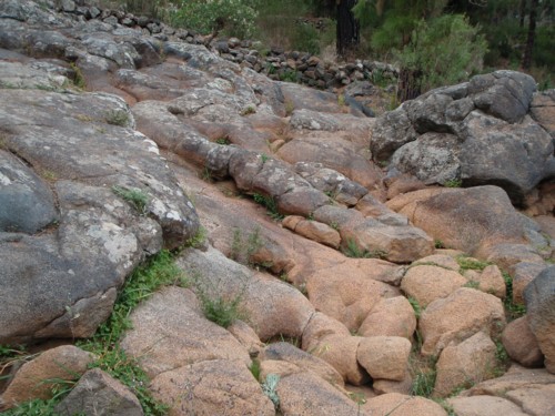 Wir wurden mit Bussen höher auf den Berg gebracht und mußten dann zufuß weiter => dies ist schnellfließende Lava gewesen