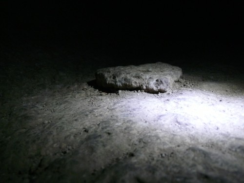 Diesen Stein kann keiner hochheben. Er ist mit dem Untergrund verschmolzen als er von der Decke stürzte