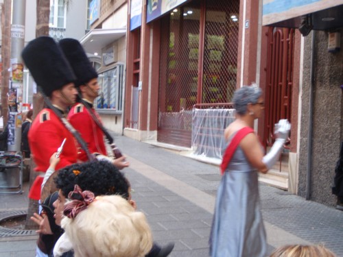 Unscharf zu erkennen, dass hier die Queen mit Gefolge unterwegs ist