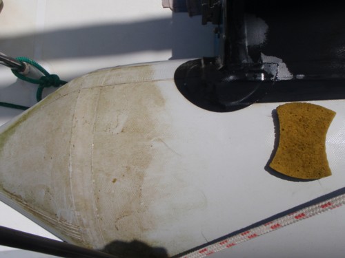 Nach 10 Tagen in der Lagune sah der Boden unseres Dinghys nicht mehr gut aus