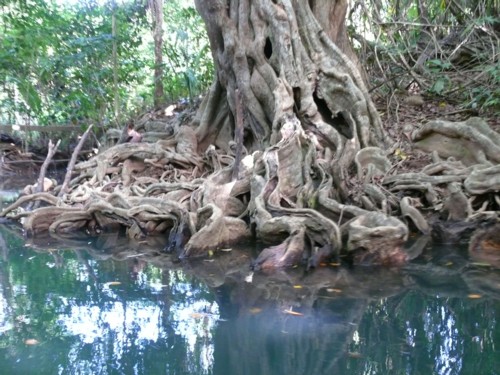 These trees are called Bloodwood, as I remember,the roots look like designed for a fairy tale, but were used as a filmset in "Pirates of the Caribbean"