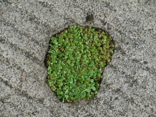 Auf dem Weg aus dem Garten haben wir in den Betonplatten das noch nicht blühende Leben gefunden