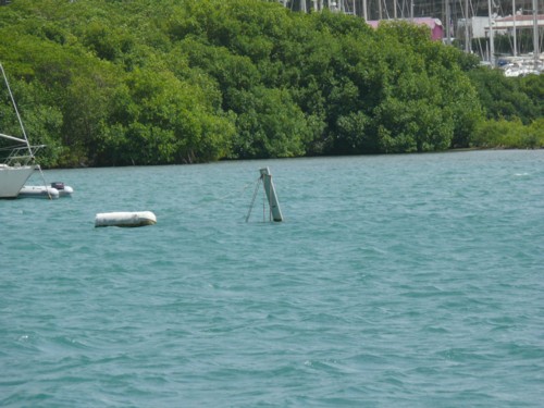In Le Marin parkte dieses Boot direkt neben uns. Es muß relativ klein sein, da es dort nur 6m tief ist
