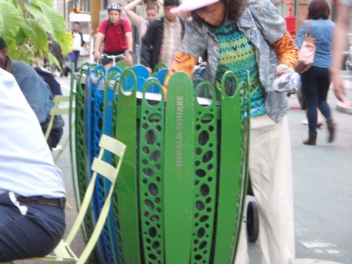 Recycling wird hier durch die Armen gemacht, die die Mülleimer nach Flaschenpfand durchforsten