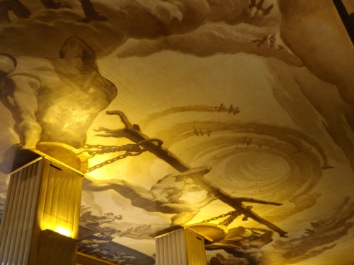 Die Sorgen der "kleinen Leute" verblassen bei der Ansicht des gewaltigen, imposanten Deckegemäldes im Rockefeller-Center