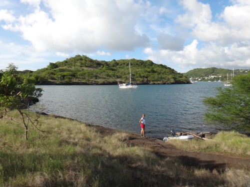 On the windwardside of Hog Island it is not too easy to land in a dinghy. The locals use this spot and then walk to the atlantic side beach