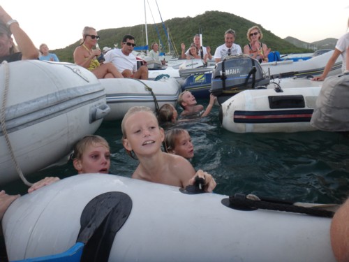 Wenn für die Großen nicht genug Platz im Dinghy ist, werden die Kinder über Bord geworfen :-)
