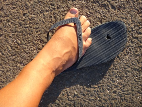 Flipflops tragen wir hier zu 99%; diese haben gerade aufgegeben ...