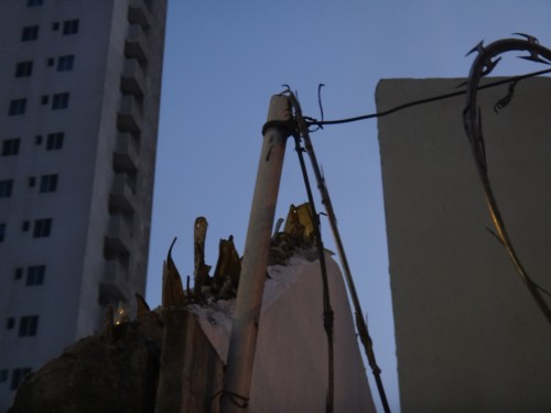 Die Schattenseite von Cartagena: Viel Stacheldraht, viele Scherben auf der Mauerkrone und ...