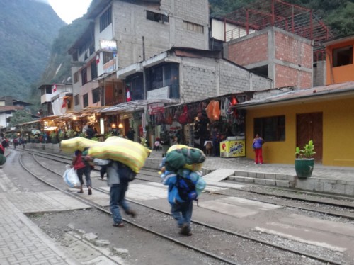 Im Tal sehen wir viele der Gepäckträger für die Wanderer des Inkatrails, der über mehrere Tage durchs Valle Sagrado nach Machu Picchu führt