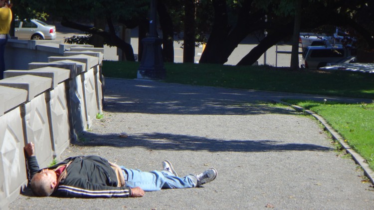 First I thought I should help here - but this guy snored in the middle of a park in the middle of the walkway, hundreds passing by within an hour