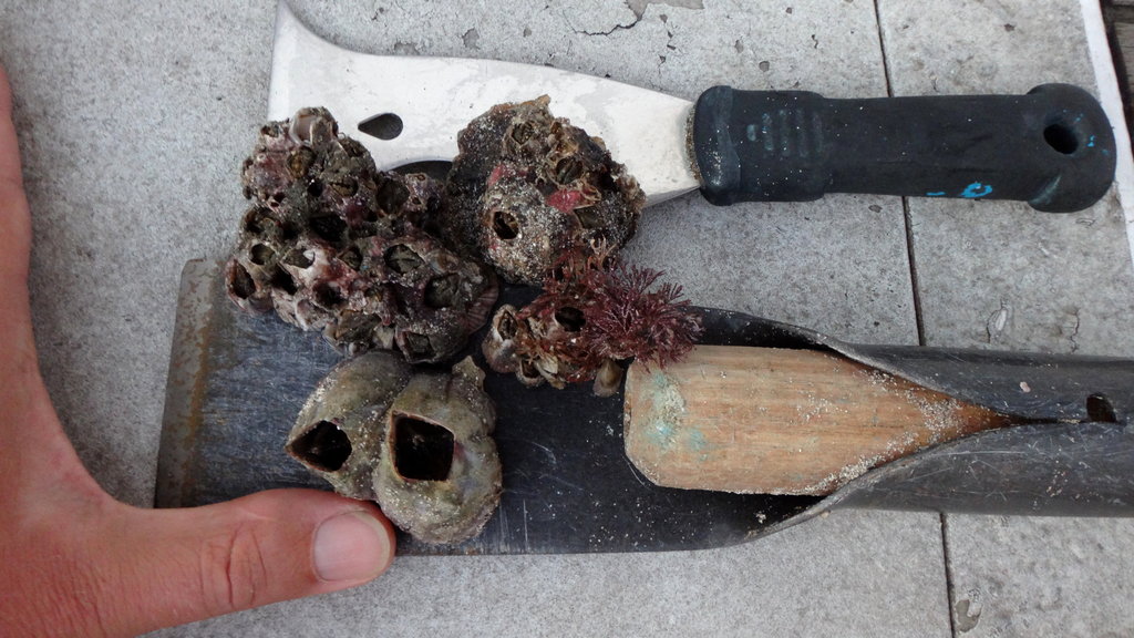 Karte mit Reiseroute und Links zu Reports in eigenem Fenster öffnen Quite a lot in german below, but some interesting parts in english (e.g. philosophic view on male/female at the bottom of the page :-) 10.03.2018 - "La Nina" - (Christian) Wir sind nach dem Trockenfallen in Bayonetta Süd zum Rumpfsäubern (war mal wieder eine Viecherei) zurück in Casaya (Las Perlas, Panama) (hier gibt es wenigstens langsames Internet) und werden ggf. hier noch ein paar Tage bleiben, mind. 5 / max. ???? :-). Die Hälfte der Bodenplatte auf dem das Schiff am Strand stand, habe ich später im Wasser abgekratzt - jetzt muß ich für den 2ten Teil noch etwas warten, bis mein entzündetes Ohr wieder normal sein wird ... (es dauert jeweils ca. 1-1,5 Stunden und das Wasser ist zur Zeit übelst kalt, der Humboltstrom scheint bis hierher gekommen zu sein und ich mag es sowieso gar nicht mit den Krokodilen zu schwimmen ... (bisher haben wir keines gesehen - andere schon!!!)). Es ist sowieso etwas viel kühler als sonst hier => ich brauche 2 leichte Decken zum Schlafen - Frost ist allerdings weit weg :-) und tagsüber ist es recht warm. Ohne unsern neuen Riesenschaber hätten wir es nicht geschafft - eigentlich ein ca. 10cm breites Gartengerät zum Erdelockern an einem langen Holzgriff (in Deutschland haben wir so ein Ding um Eis auf dem Gehweg brutal zu zertrümmern) - In Ecuador will ich einen in Reserve kaufen (das Ding schwimmt nicht)! Heute ist hier kaum Wind (Das Boot wackelt nicht, was schon mal gut ist), und es sieht sehr nach Regen aus; vor 3 Tagen hatten wir schon Wetterleuchten im Osten => Trockenzeit sieht normalerweise anders aus, und diese sollte mindestens bis Ende des Monats gehen !!!! Durch La Nina ist dieses Jahr alles Anders und die alteingesessenen Segler hier haben dieses Wetter in den letzten 15 Jahren so auch noch nicht erlebt. Insgesamt kommt es uns so vor, als ob wesentlich weniger Boote vom Atlantik durch den Kanal fahren, als in den 3 Jahren zuvor. Wir vermuten, das die Hurricane letzten Sommer in der Karibik so viele Boote und Träume zerstört haben, das es auf die Situation jetzt auch Auswirkungen hat. Wir haben noch einiges Vorzubereiten, bevor wir abfahren und der Wind ist auch erst wieder für Ende nächster Woche angesagt => Wir werden schauen und hoffen ein akzeptables Wetterfenster zu bekommen - im April wird es unbeständiger und härter => da wollen wir schon in Ecuador sein. ![]() Bayonetta south - one of our favorites - the last beaching ![]() Barnacles and our big scraper - without this massive tool, nothing moves ![]() They cost a lot speed - Darwin examined them thoroughly for his books (we just killed them) - below was written a couple of days ago, we just returned to an area with internet access again from Bayonetta - 15.03.2018 - "Casaya" - (Christian) We left PTY 2 weeks ago, beached, cleaned the hull and then we both had a cold and felt not ok for some days. Now we try to prepare us and the boat to get started south. We wanted to rigg up the windvane-steering, but one important part is completely stuck! Just now we are thinking about going back to PTY for 1 or 2 days for that... Hope we will leave maybe end of next week, we would like to depart as soon as possible (before April), to get good conditions. It is nice here in Casaya, very quiet. No easterly winds until now, but at night still some swell. 15.03.2018:30 - "Maggots (Maden)" - (Christian) We are both well (until now! => Dagmar was so nice to squeeze some juice out of our mandarines (purchased friday) - it tasted lovely - until I saw some maggots activly swimming on top of my juice - it is new to us that they live inside mandarines - good news is they seem to be organic ... Next time we might filter the juice first...) We finally left PTY (Panama-City) after having officially cleared out of the country 9 weeks ago! After anchoring all the time we had to adapt to moving and sailing the boat, again; some halyard-cleats were a little bit tired/corroded ... We just arrived in Bayonetta South to beach tomorrow for hullcleaning (9 months of PTY-barnacles on the lower hull ... (Maybe "nearly" as big as plates or saucers :-) The tides are still close to 6m and just now is lowtide with 100cm water beneath the boat, with the centerboard up => that is about 40 cm more than expected / in the tidetables mentioned - I even can see the ground, despite the red-tide-algae. Yesterday in Casaya a guy from "the aircraftcarrier next door" came over to say hello. He lives with 2 friends on a bit bigger motorcatamaran with a 4 persons-helicopter onboard (The price for their tender alone (which they lost in the Tasman Sea!) was about the price of our boat ..) He is quite a character and left East-Germany ca. 30 years ago to California and sold cars to make a fortune - 49-years now and more or less retired ... (www.mv-samara.com - interesting what you can do with some spare money). (Maybe I should have gone into the car business instead banking ...) Cruising is about meeting people ... :-) We are taking it slow (as always) and want to sail to Bahia in maybe a week, depending on the weather window ... The weather is kind of strange, winds are a lot weaker than "normal". There were a lot of ugly easterlys in Las Brisas and the water is freezing cold!!! I need two blankets at night! After beaching I still need to go into the water to scrape the barnacles away which live were the hull is placed on the sand - Maybe I'll do this in this bay and hope that the water will get warmed by the sun... The boat is in good shape now, motor revised, new navigation-equipment (but until now, I liked the old one better ...) We have to set up the windvane-selfsteering and a few improvements and basically we are ready to go. Dagmar is a little tired of the boat, aswell of the preparations ... (me too => it is time to see something new!) We might stay 2-3 months in Equador, to do some land traveling to Peru, then sail to Marquesas, where we will decide if