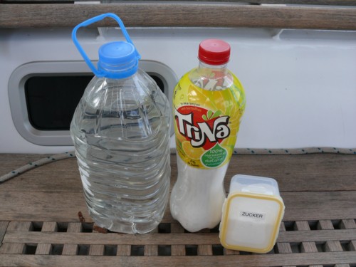 ![]() To avoid big bottles and glasbottles in the kitchen we take these UV-resistant plastic-bottles we found in an spanish pharmacie |